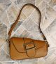 Különleges fazonú, női bőrtáska, dekoratív csattal.